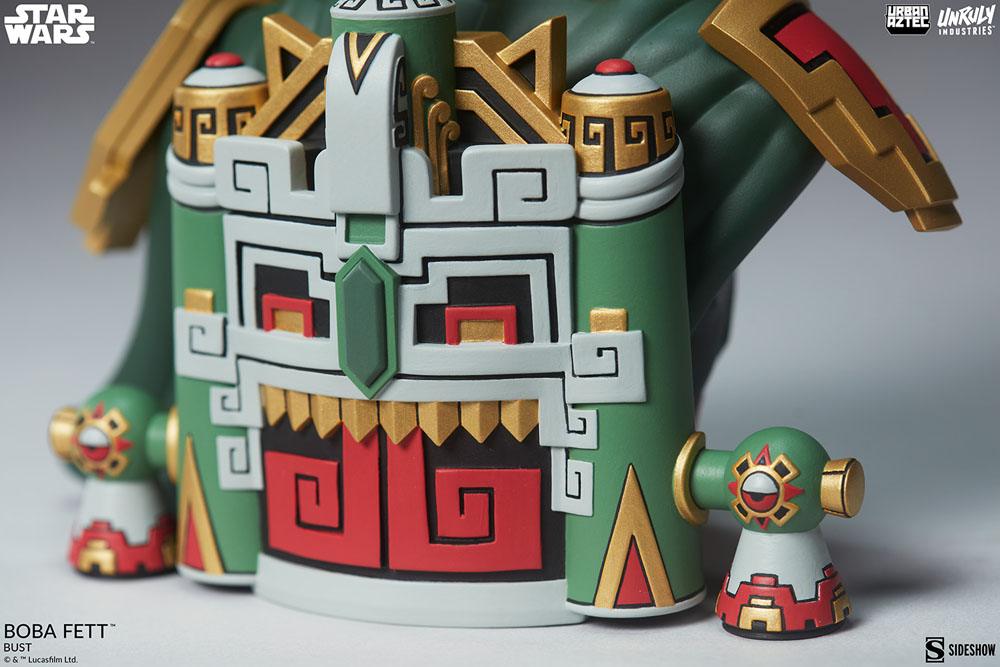 No disintegrations, all dynamite. Urban Aztec infiltrates a galaxy far, far away with the Boba Fett™ Bust by artist Jesse Hernandez, blending Mayan and Mandalorian influences into badass bounty hunter.