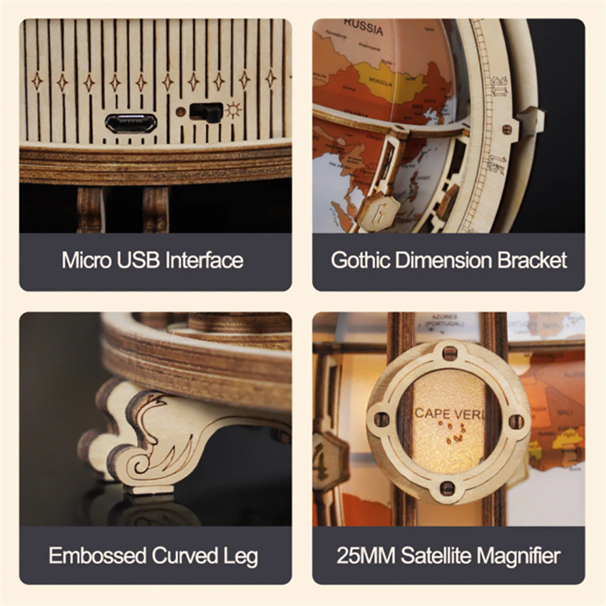 Robotime DIY Wooden Globe incl. lighting 16.7×20.3×29.3 cm